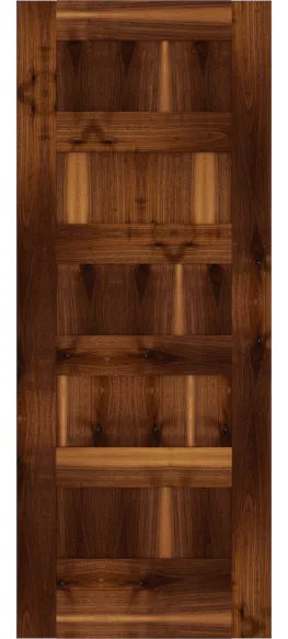 Mass-produced doors from home improvement stores are typically hollow-core or use engineered cores with veneer faces. They come in standard sizes and limited styles. A custom solid wood door from Estate Millwork is built to your exact dimensions, from the wood species you choose, in the style you want. Every component is solid hardwood, assembled with time-tested joinery. The visual difference between a solid walnut door and a hollow-core veneer door is immediately apparent. Solid wood doors also offer superior sound insulation, thermal performance, and a substantial feel that cannot be replicated by lightweight alternatives.